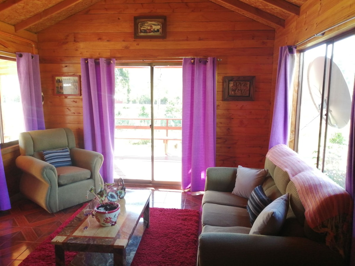 Chalet in campagna per due persone, vicinissimo alla città di Futrono. Situato in un ambiente tranquillo e sicuro, con alberi e un piccolo ruscello. Ideale per riposare, senza TV né wifi. Dispone di una camera da letto al secondo piano con letto matrimoniale. Sulla terrazza si può fare un barbecue e godersi il canto degli uccelli e il suono dell'acqua del ruscello. Distante 10 km da Coique e 20 km da Huequecura, le spiagge più vicine nei dintorni.
