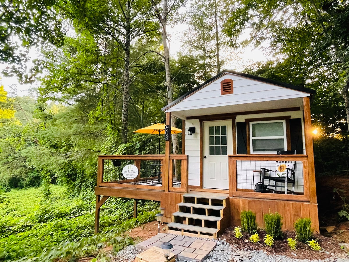 Questo tranquillo monolocale si trova in una valle tranquilla tra le Smoky Mountains. Ideale per i nomadi digitali, per chi viaggia per lavoro o per una vacanza di coppia perfetta! Situato in posizione centrale per le destinazioni turistiche preferite e le attività all'aperto. L'Andrews Valley Rail Trail è a meno di un miglio di distanza! Goditi una serata intima o passeggia fino al pittoresco paesino di Andrews, con negozi e ristoranti. Escursioni, cascate e rafting nelle vicinanze. Non vedo l'ora di ospitarvi.