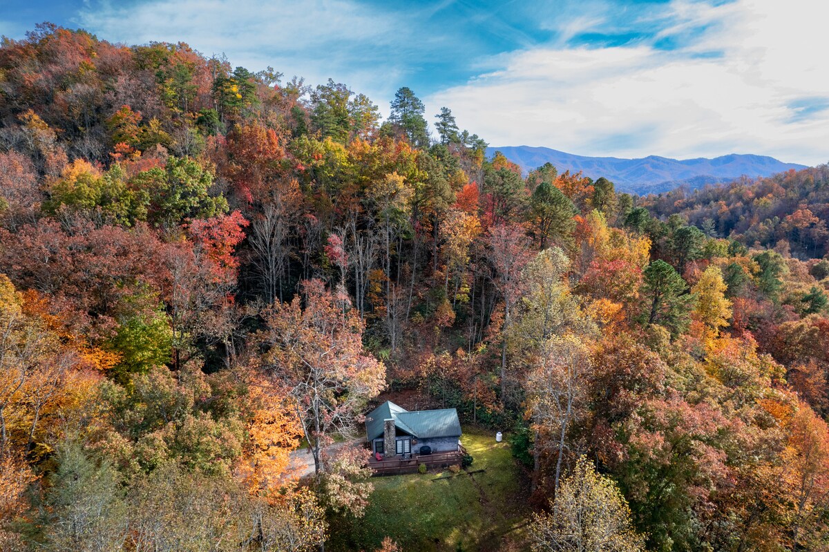 Chalet appartato tra le montagne in posizione centrale rispetto a molte attività e attrazioni nella parte meridionale del Smoky Mountain Nat'l Park, accanto a un torrente. Molto privata; due camere da letto, un bagno completo e una cucina completa con elettrodomestici in acciaio inossidabile. Ampio e bellissimo camino a gas telecomandato/ mini spaccatura per calore e aria. Ampia zona esterna a più livelli con vasca idromassaggio per 4 persone, griglia a propano e braciere.