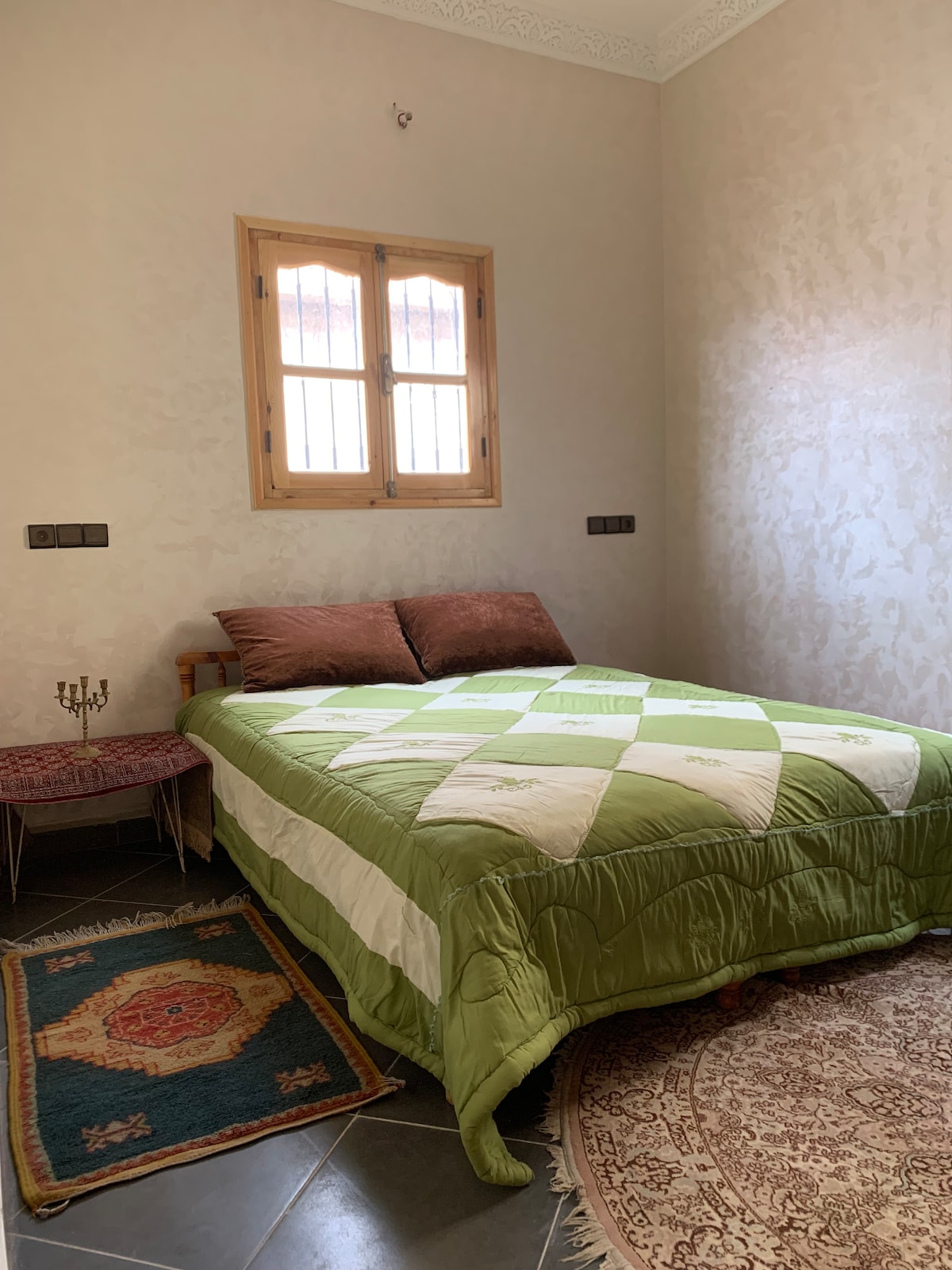Situata nel palmeto di Ouarzazate, questa piccola casa in stile berbero ti incanterà per il suo fascino e il suo comfort. Tranquillità, relax e incontri con i nostri animali sono garantiti. Con piscina e giardino condivisi con altri viaggiatori. Colazione inclusa, aria condizionata/riscaldamento, wifi, terrazza e parcheggio custodito gratuito. Una camera con 1 letto matrimoniale e 3 letti singoli. Un soggiorno convertibile con 2 letti singoli e un angolo cottura attrezzato. Ideale per gli amanti della natura e dell'autenticità.