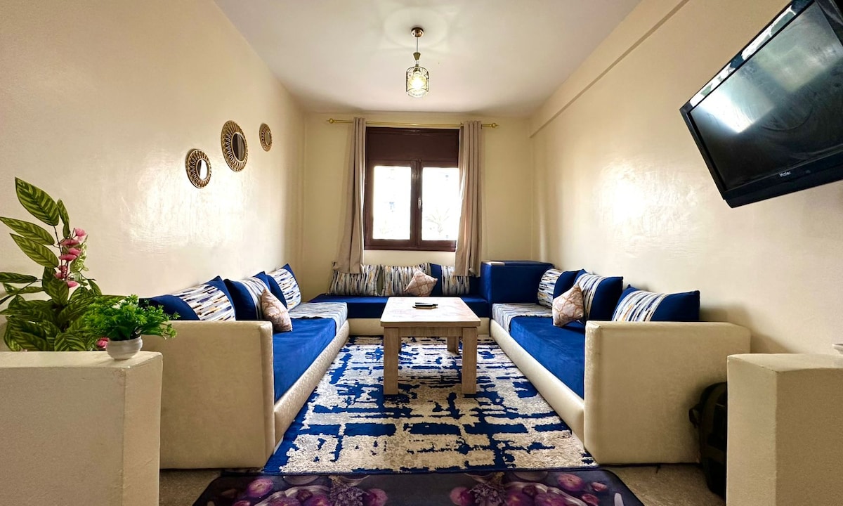 Rilassatevi in questo nuovissimo alloggio situato al 1° piano all'interno di una casa tranquilla e luminosa, situata in posizione ideale vicino a grandi superfici, ristoranti, farmacie e centro ricreativo. Situato a 10 minuti dalla Corniche in auto e a pochi minuti dal McDonald' s Adrar. Vicino al CROCOPARC, allo XTREMEPARK e al centro commerciale SELA PARK. La nostra proprietà rispetta i minimi dettagli per offrirvi un soggiorno eccezionale