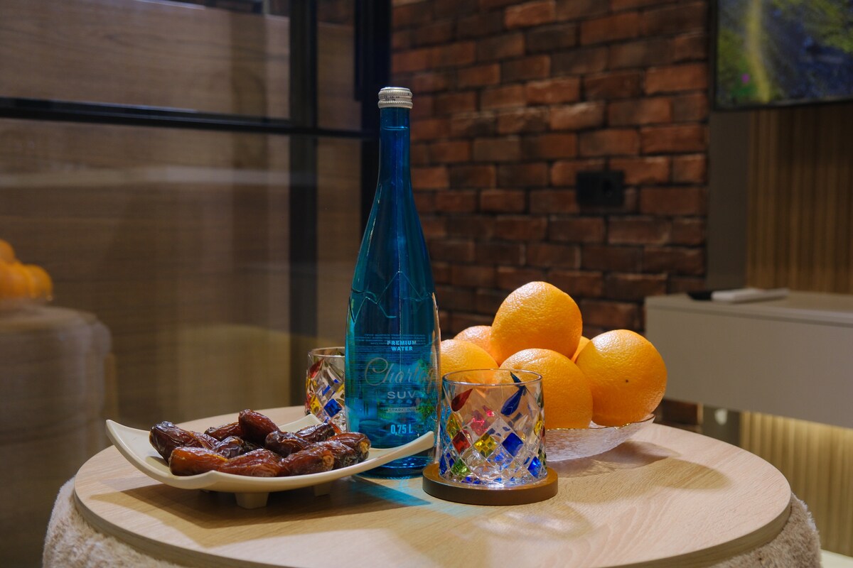Beautiful modern renovated Canadian style unit. Comes with: - 90’ TV amazing for movie theatre experience - Full Sonos sound for amazing time while watching movie - Massive kitchen to cook - Location is 2 min away where president of Uzbekistan lives, means its a good and secure area - Down side is - its 20 min away from downtown/centre of the city - Has security camera outside of the Unit - Taxi really cheap in this area and easy to find by using Local Taxi Application on your phone