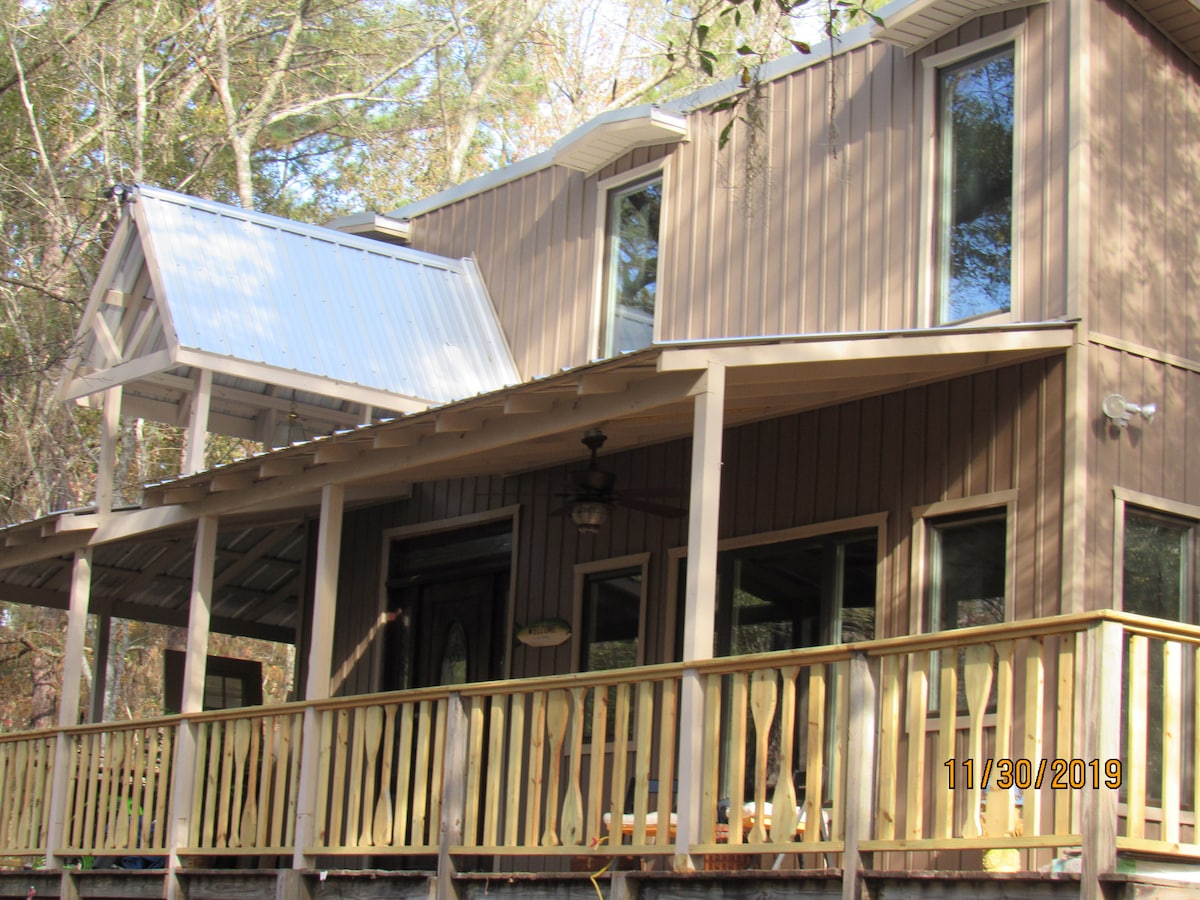 Goditi la vista mozzafiato da questo chalet in legno di cipresso sulle rive del fiume Ohoopee. Fai correre le dita dei piedi sulla sabbia bianca e soffice mentre prendi il sole sulla tua spiaggia privata. Poi tuffati in acqua per rinfrescarti dal caldo sole estivo. Non dimenticare la tua canna da pesca. Goditi il canoismo e il kayak sul fiume Ohoopee. In alternativa, leggi un libro sull'ampio portico e immergiti nella pace e nella tranquillità con vista sul fiume. Rilassati con tutta la famiglia in questo alloggio tranquillo.