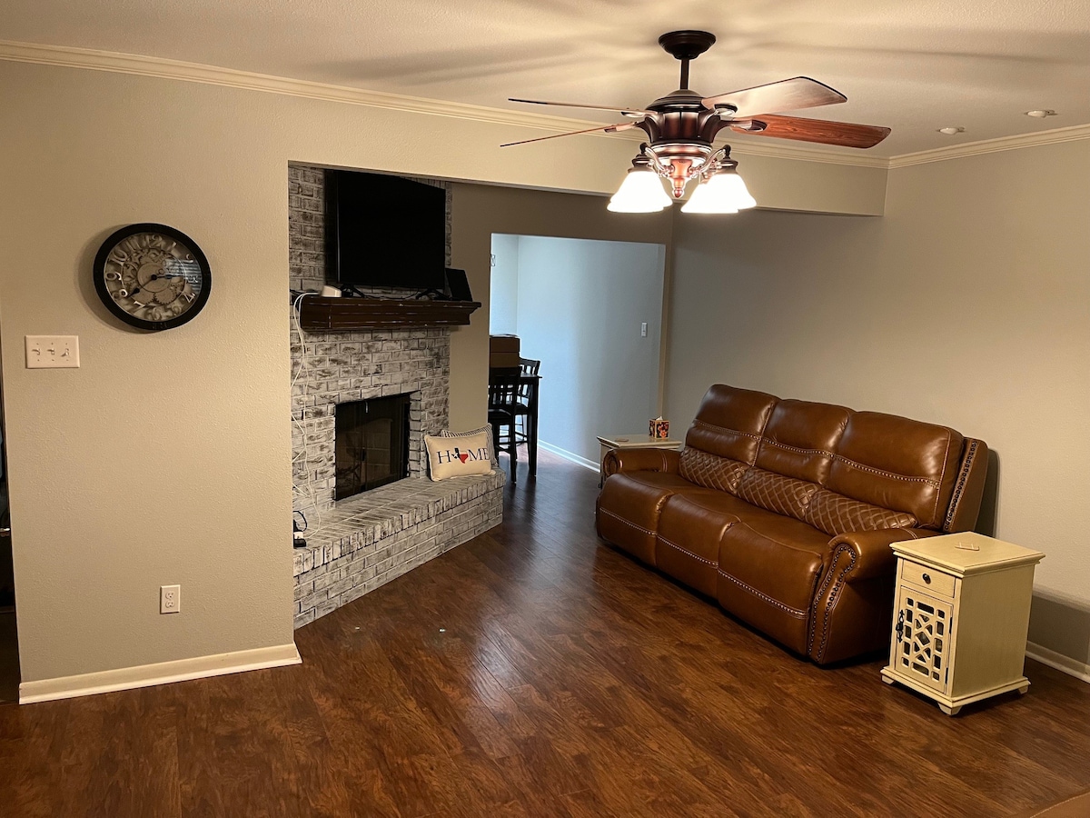Redbud Retreat is a spacious 2BR/2BA brick patio home on a quiet private street, walkable to Redbud Park. With 1,400+ sq ft, it offers a king primary suite, second full bath, fast WiFi, 55” smart TV, fully equipped kitchen, dining/workspace, and two private patios for relaxing. Located off Buffalo Gap Rd near Hendrick Medical Center South, a quick drive to ACU, restaurants, and shopping. Ideal for couples, small families, or business travelers seeking a comfortable, convenient Abilene stay.