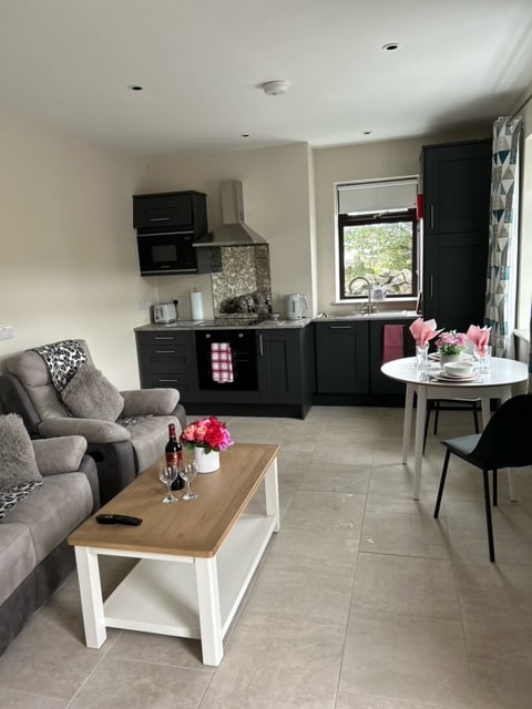 Si tratta di un nuovo bellissimo appartamento indipendente con ingresso privato. Si trova in una buona posizione per godersi la favolosa Wild Atlantic Way e offre un facile accesso in auto a Galway City. Ci sono spiagge appartate e piacevoli passeggiate nelle vicinanze. Le isole Aran sono facilmente raggiungibili in traghetto da Rossaveal, a 15 minuti di auto. Il Connemara Isles Golf Club si trova a pochi minuti di auto. C'è una palestra a cinque minuti a piedi dalla casa. Nelle vicinanze c'è un negozio di alimentari e un pub.