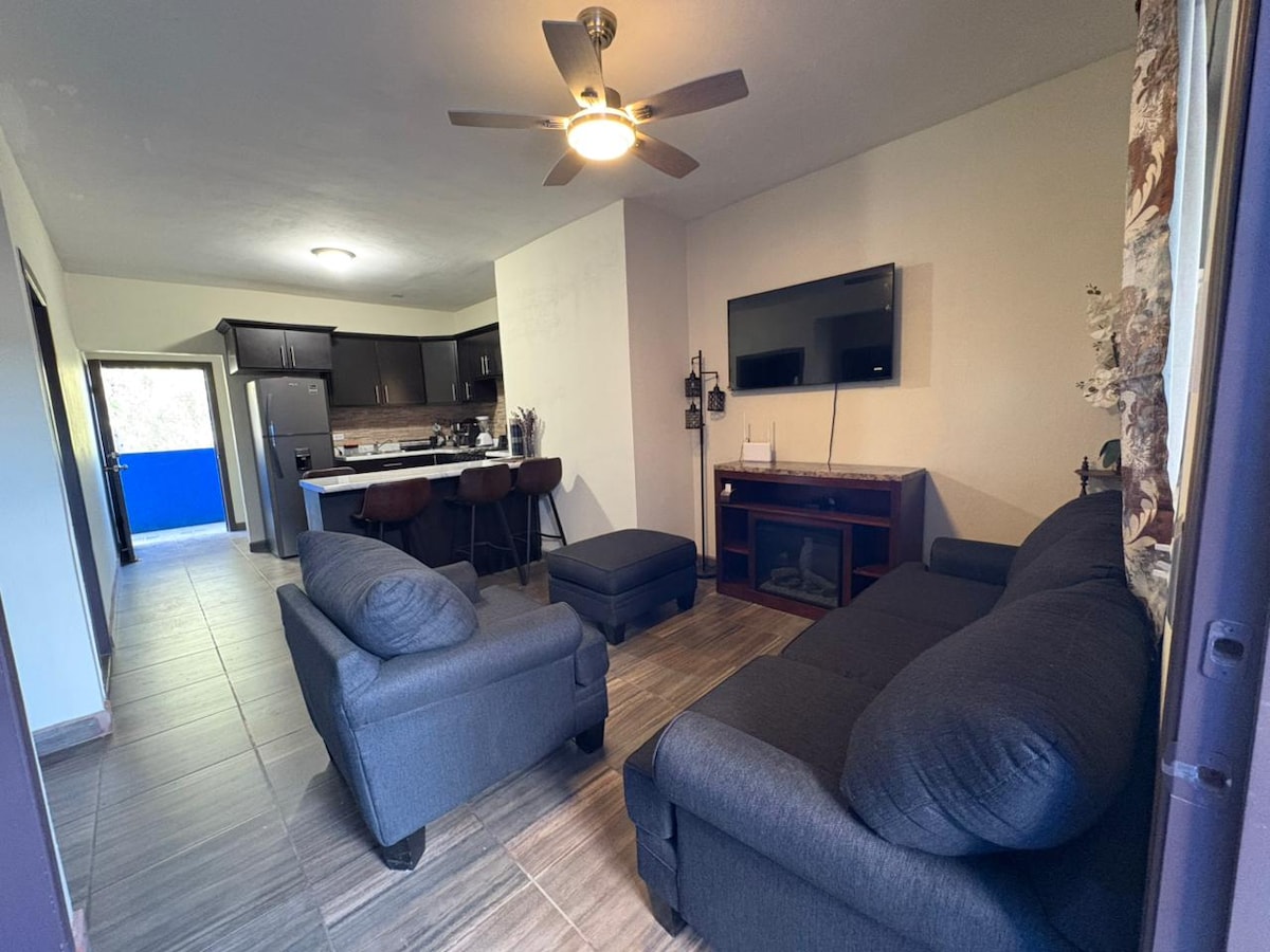 Tu casa linda fue diseñada para que disfrutes de una estancia familiar, centrica y privada. Es un lugar espacioso, con amplio estacionamiento privado. Equipado con todo lo necesario para tu comodidad. Nos encontramos a 5 minutos de la linea fronteriza y a media hora de la ruta del vino. Contarás con un espacio totalmente limpio y desinfectado.
