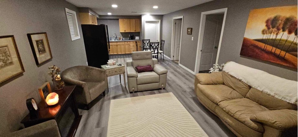 Suite per gli ospiti di 100 metri quadrati annessa alla residenza principale, ma completamente separata, in una tranquilla strada residenziale. Livello superiore con due camere da letto, lavatrice/asciugatrice e 1 bagno con doccia personalizzata. Il livello inferiore dispone di cucina completa, soggiorno con caminetto a gas, televisore da 42 pollici e connessione internet ad alta velocità. Riscaldamento e raffrescamento autonomi. I proprietari sono sul posto per rispondere rapidamente a tutte le tue esigenze. Vicino a WFCU, Caesars Windsor e a tutte le arterie principali. Ci dispiace non poter accogliere gli animali domestici.