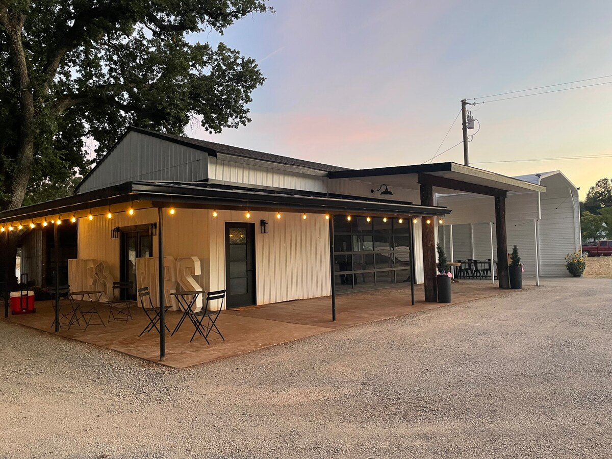 Crea qualche ricordo in questo luogo unico e adatto alle famiglie. Questa proprietà include un adorabile cottage rurale del 1950 completamente ristrutturato per dormire e il tuo soggiorno con un bagno. A un costo aggiuntivo offriamo un moderno barndominium per ospitare eventi e raduni (basta inviare un messaggio per i dettagli). Il secondo bagno è lì dentro. Ci sono diversi ettari di posti a sedere all'aperto e patii coperti, nonché posti a sedere al coperto, tavoli e altro ancora.