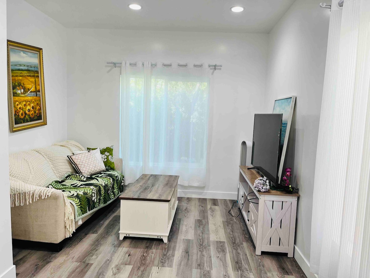 Accogliente monolocale privato nel cuore di El Monte con design moderno e servizi curati. Goditi un comodo letto matrimoniale, smart TV, WiFi e angolo cottura con caffè/tè. Situato in posizione centrale vicino alle autostrade, raggiungi LA, Pasadena e Arcadia in 25 minuti. Quartiere tranquillo con parcheggio facile, ingresso privato e servizi essenziali forniti. Perfetto per coppie, viaggiatori solitari o professionisti in cerca di comfort, comodità e un soggiorno rilassante.