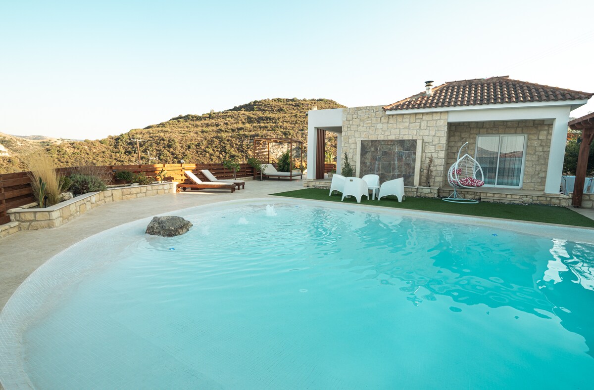 Immergiti nella serenità! Rifugiati in un rifugio soleggiato su una tranquilla collina. Rilassati a bordo piscina, goditi il sole e goditi viste mozzafiato sul mare e tramonti dorati. A soli 15 minuti di auto da Paphos, i nostri due incantevoli monolocali sono la base perfetta da esplorare. Spiagge, sentieri naturali, porto, Laguna Blu e centro storico di Paphos sono tutti a 15-30 minuti di auto. Wi-Fi gratuito, parcheggio, una piazza del paese con taverne e un enoteca, a soli 4 minuti di auto. Auto indispensabile. Piscina aperta tutto l'anno (non riscaldata).