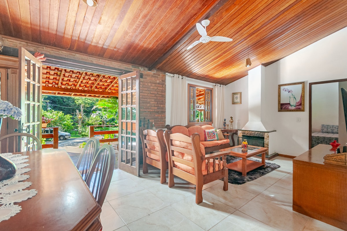 Casa di campagna con 6 chalet. Ci sono 11 camere confortevoli che possono ospitare fino a 22 persone. Più c'è la possibilità di aggiungere una casa sul lago nelle vicinanze con 2 camere da letto per altre 4 persone. Richiedi il link da questa casa. Piscina, sauna, barbecue, cucina attrezzata, sala TV, home office. 30 minuti da Itaipava e 2,30 minuti da Rio. Accesso completo tramite asfalto. Internet in fibra ottica e Starlink Ogni spazio è esclusivo di chi affitta,