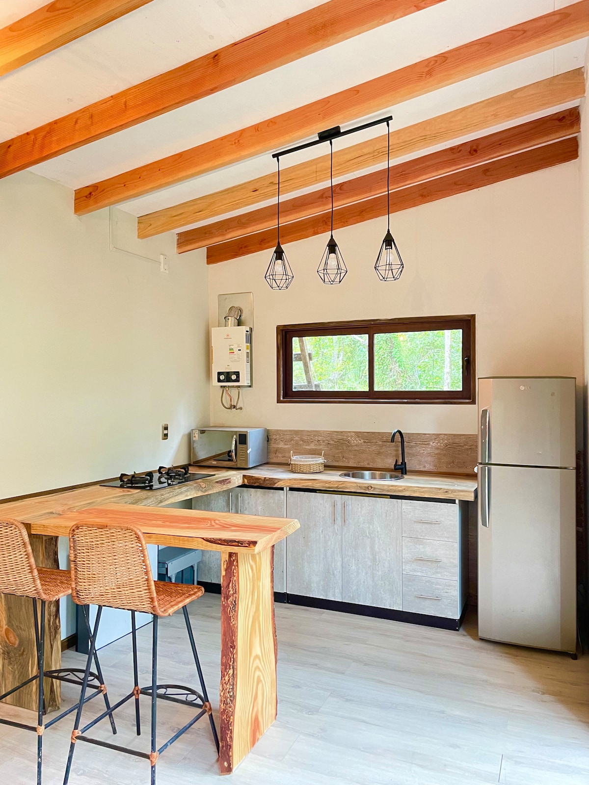 A 45 minutos (32 km) de Pucón, hermosa cabaña alpina inserta en el bosque, pensada para una experiencia de desconexión y vida simple. Silencio, canto de aves, árboles nativos, sol y lluvia cordillerana, con excelente WiFi. Contamos con energía eléctrica convencional e incorporamos energía renovable para ser más conscientes con el planeta. Calefacción estufa a pellet y cocina a leña, para quienes valoran la vida simple y consciente. Si amas el bosque más que los lujos urbanos, esto es para ti!