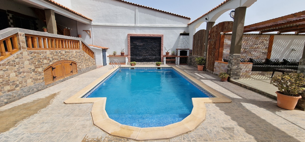 Grande Villa di 300m2 a Bousfer Spiaggia per 6/8 persone con Piscina di 7,5m x 4,5m PRIVATA e SENZA VITI. Vicino al complesso turistico delle Andaluse, in una cooperativa molto tranquilla, a 100 metri dalla spiaggia, tutti i comfort e completamente climatizzata.