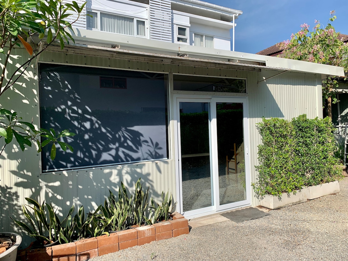 Piccola casa nel cuore della città di Chiang Mai con giardino privato. Puoi gustarti il caffè al mattino o preparare una bella cena, poiché forniamo una cucina completamente attrezzata. Situato nel centro di Chiang Mai, vicino al fiume Ping, si può raggiungere a piedi il ponte Nawarat o il famoso mercato di Waroros in 10-15 minuti.