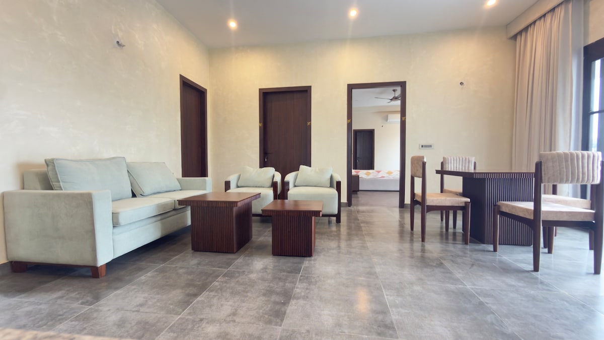 Vivi il massimo del relax nella nostra esclusiva casa familiare vicino alla Corbett Tiger Reserve! Prenota una stanza o un intero piano con 3 camere da letto di lusso con bagno privato e balcone, una cucina funzionante, un'ampia hall e un pittoresco giardino. Divertiti con il wifi ad alta velocità e una smart TV che offre oltre 12 piattaforme OTT. Concediti il nostro sereno rifugio senza alcolici per inestimabili legami familiari tra le braccia della natura. La tua vacanza perfetta ti aspetta!" Nota: per prenotare l'intero piano, prenota per 6-9 persone.