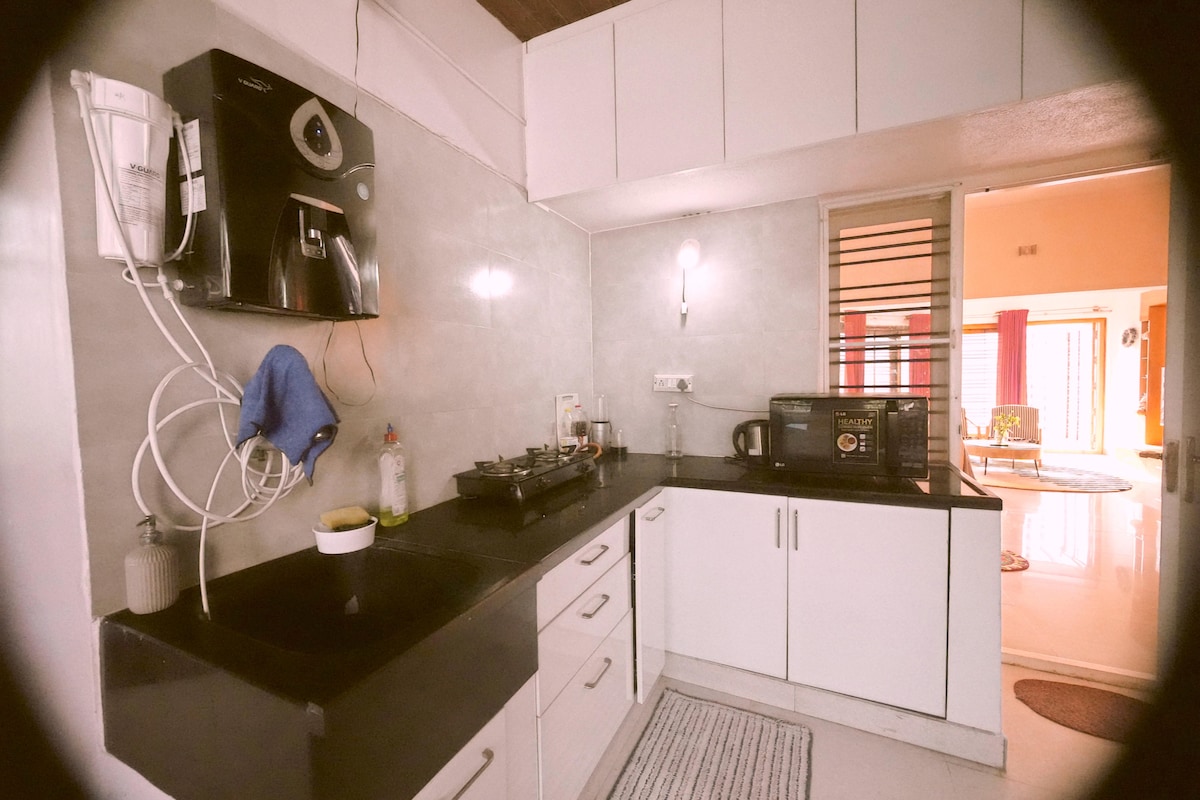 Spacious apartment in a peaceful surrounding - 2BHK with air-conditioning in the master bedroom and all amenities required for short and long term stays. Ideal for families, couples and corporate travelers. The space Well kept 2bhk with A/C in master bedroom, Washing machine, Fridge and RO water purifier. A fully stacked kitchen where you can put your cookery skills to practice. High speed WIFI to indulge in work from home.