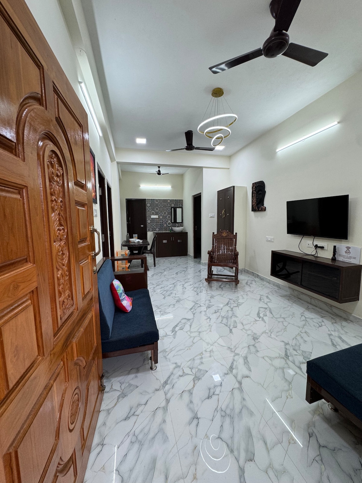 Moderno 2BHK vicino all'ospedale Kamakshi in una tranquilla zona residenziale. Luminoso, ben ventilato e progettato con un layout pulito e minimalista. Ideale per famiglie, professionisti, coppie o ospiti NRI. Comodo accesso a scuole, negozi e trasporti pubblici. Perfetta combinazione di comfort, posizione e ambiente tranquillo. Pronto per essere abitato, con ampi soggiorni e camere da letto. *È obbligatorio fornire i documenti d'identità di tutti gli ospiti. Questa è una proprietà comunitaria richiesta per la politica di associazione dell'appartamento.*