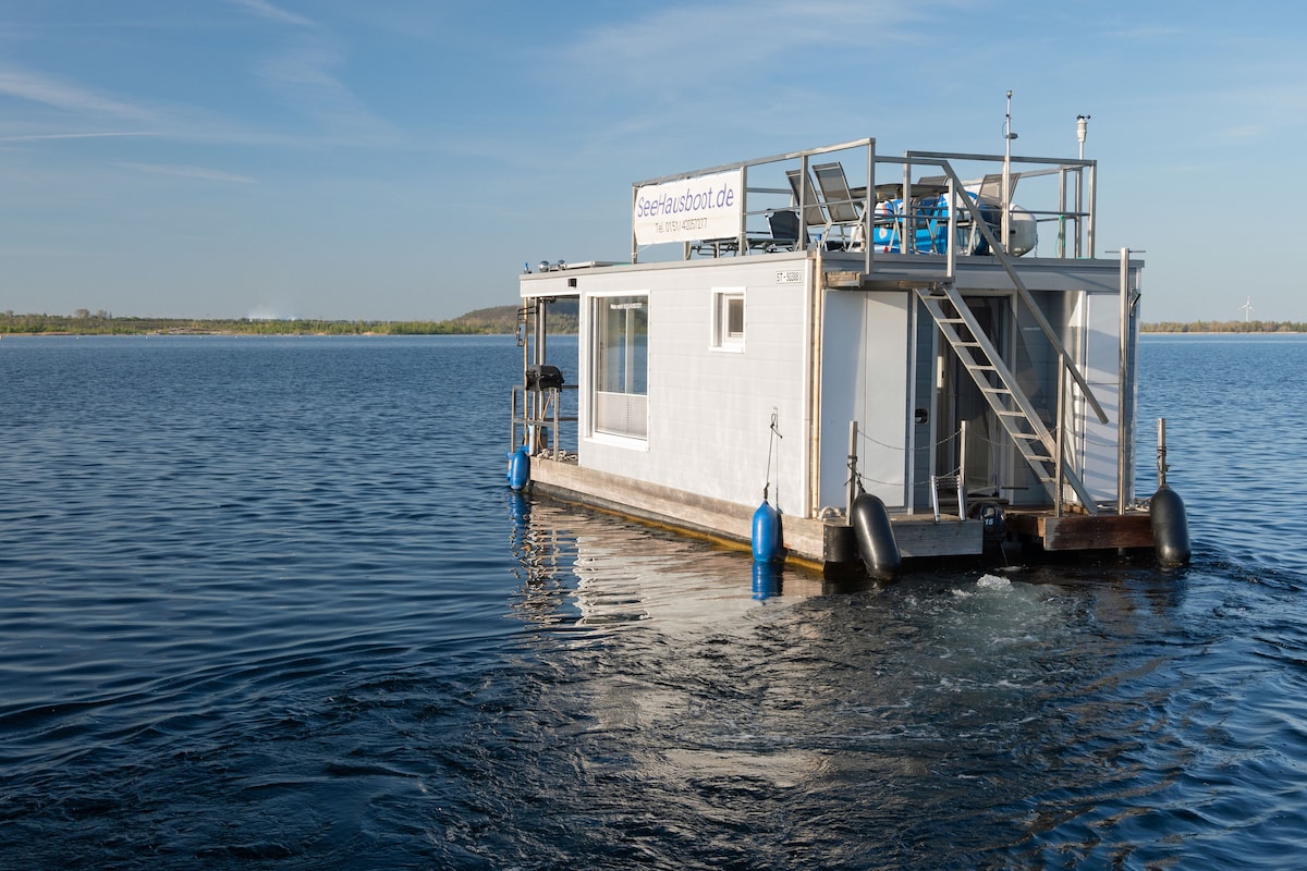 Vivete il lago Geiseltalsee a bordo della casa galleggiante. Godetevi la comodità di un appartamento sulla casa galleggiante. Nella pratica cucina è possibile preparare il cibo. Oltre al fornello a gas e a un barbecue a gas, sono disponibili forno a microonde, macchina per il caffè e bollitore. Sulla spaziosa terrazza sul tetto potrete godere della vista sul lago artificiale più grande della Germania o rilassarvi sui lettini. Si prega di notare che la guida non fa parte della prenotazione AirBnB.