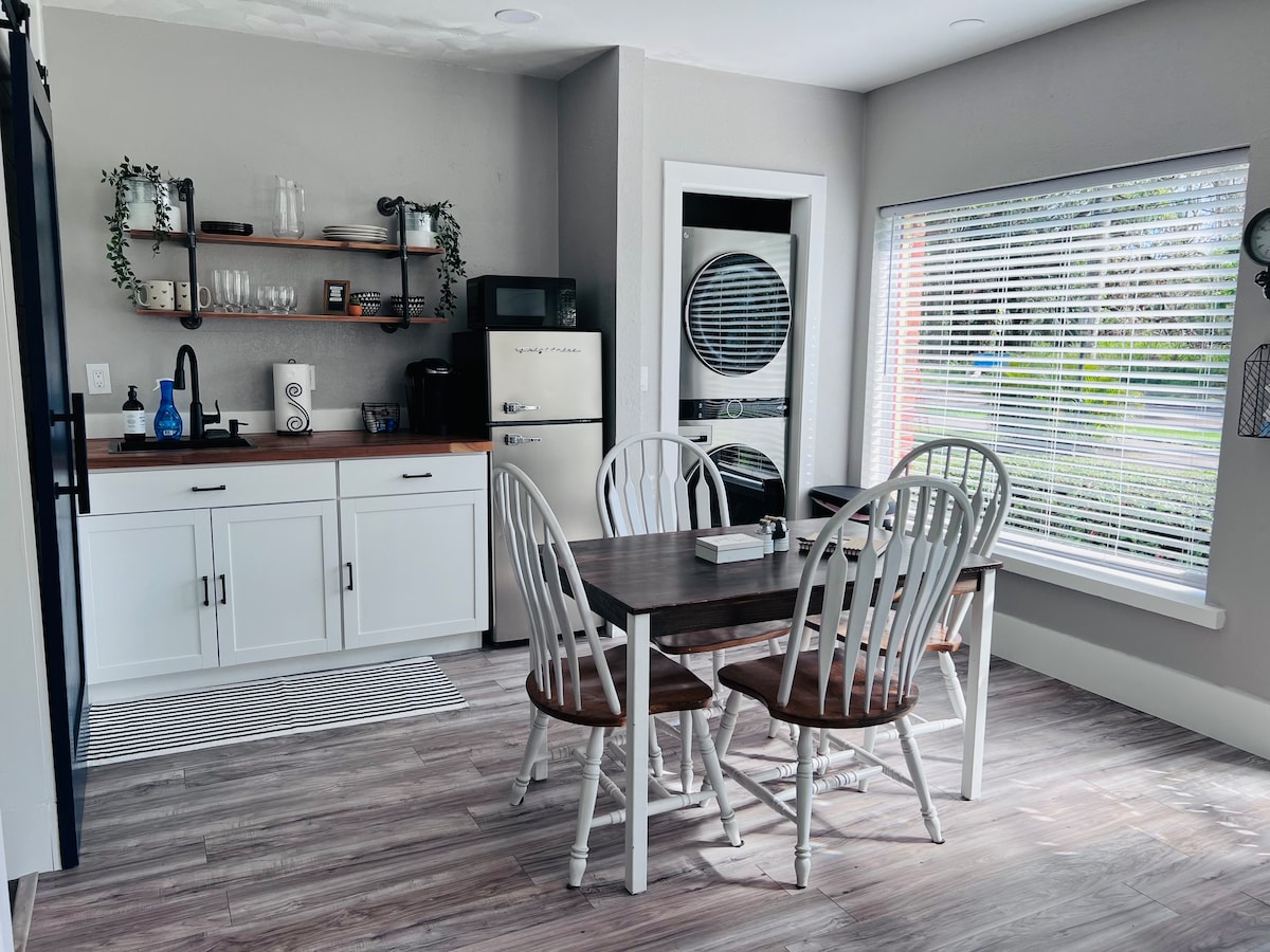 Riverside Studio è un'aggiunta recentemente ristrutturata a questa bellissima casa con ingresso privato. Il monolocale offre agli ospiti una camera da letto matrimoniale, bagno padronale, televisore, frigorifero, forno a microonde a convezione, macchina da caffè Keruig e un bellissimo angolo cottura. Ti auguriamo un piacevole soggiorno al Riverside Studio, dove potrai riposare e rilassarti.