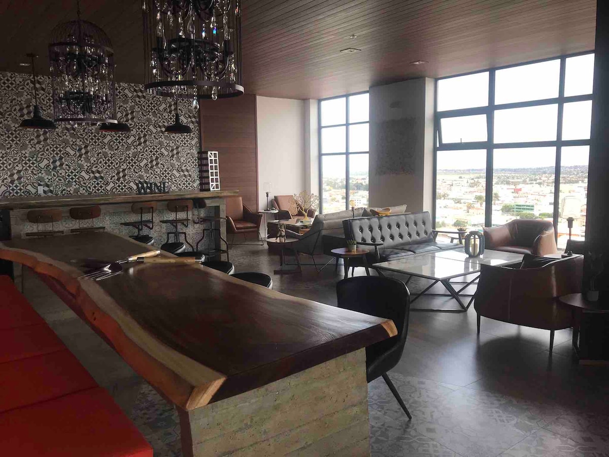 Benvenuto a CityPoint, dove soggiornerai in un moderno appartamento con 2 camere da letto, perfetto per coppie, visite mediche o viaggiatori d'affari. Situato su Paseo del Rio, con facile accesso alle strade principali, è comodo per esplorare la città o attraversare il confine. Offriamo un parcheggio privato per la tua comodità e una serie di servizi di lusso, tra cui: piscina panoramica con vista sulla città, una palestra ben attrezzata e un'area comune per rilassarsi. A pochi passi da ristoranti e monumenti importanti.