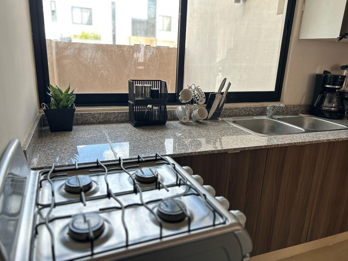 Questo luminoso appartamento è la scelta perfetta per due persone, ideale per un soggiorno confortevole e rilassante. Il balcone privato aggiunge un tocco speciale che completa l'esperienza. La sua posizione strategica su Calle 62, a pochi passi dal nuovo Centro Congressi Internazionale e dal Paseo Montejo, lo rende il miglior punto di partenza per un viaggio di piacere o di lavoro.