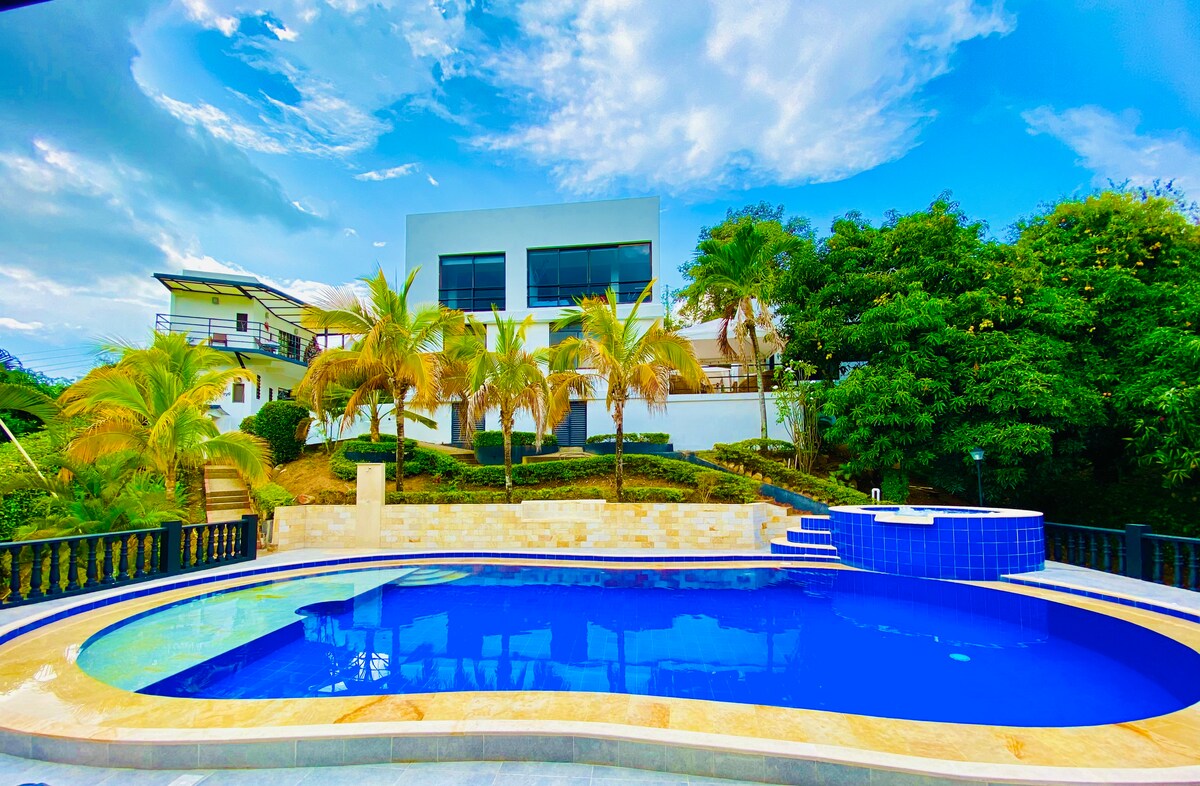 🍃🏠Disfruta de la energía del sol y la serenidad de la naturaleza en un espacio único para descansar y conectar. Desde aquí, podrás admirar vistas impresionantes y vivir atardeceres inolvidables. A tan solo 28 minutos de Manizales (12 km), es el escape perfecto de la rutina urbana. Disfruta de un Jacuzzi Climatizado, Piscina con tratamiento salino, y zona BBQ. Nuestra casa es ideal para tu familia o grupo de amigos Nota: La habitación principal (familiar) permanecerá cerrada durante tu estadía.