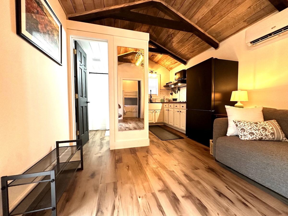 Non possiamo descrivere adeguatamente quanto sia tranquillo sedersi al tavolo da picnic e ascoltare il vento tra gli alberi o la serenata degli uccelli mentre il cielo diventa rosa e viola sulle Smoky Mountains. Abbiamo volutamente nascosto la nostra adorabile minicasa nel bosco per offrirti il rifugio tranquillo che stai cercando. Ti sentirai come "Cappuccetto Rosso" che salta attraverso i boschi mentre sfugge al "Grande Lupo Cattivo" della tecnologia e dello stress. Le serate intorno al focolare sotto le stelle sono semplicemente magiche!