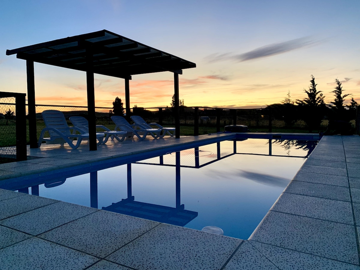 Fully equipped house with a spacious garden, solarium, and heated pool (heating is optional and incurs an additional charge of $20k/day). The house features 2 en-suite bedrooms, a fully equipped kitchen, living area, cable TV, Wi-Fi, and covered parking for 2 vehicles. Located on the main avenue of Sierra de la Ventana, just steps from shops and restaurants. A perfect space to relax with family or friends and enjoy a comfortable, unforgettable stay year-round.