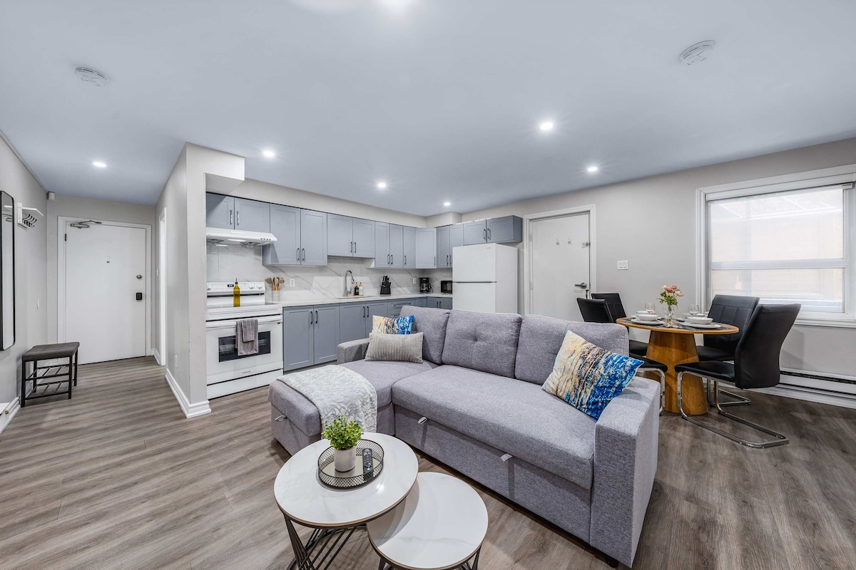 Soggiorna in questo elegante appartamento con 2 camere da letto in uno dei quartieri più vivaci di Toronto. Con 2 letti queen-size, un comodo divano letto, una cucina completa, una zona pranzo e una smart TV da 55", è ideale per un massimo di 5 ospiti. A pochi passi da caffè, negozi, spazi verdi e mezzi di trasporto, è la base perfetta per esplorare la città. Che tu sia qui per un weekend o per un soggiorno prolungato, goditi il comfort, la comodità e una vera atmosfera locale.