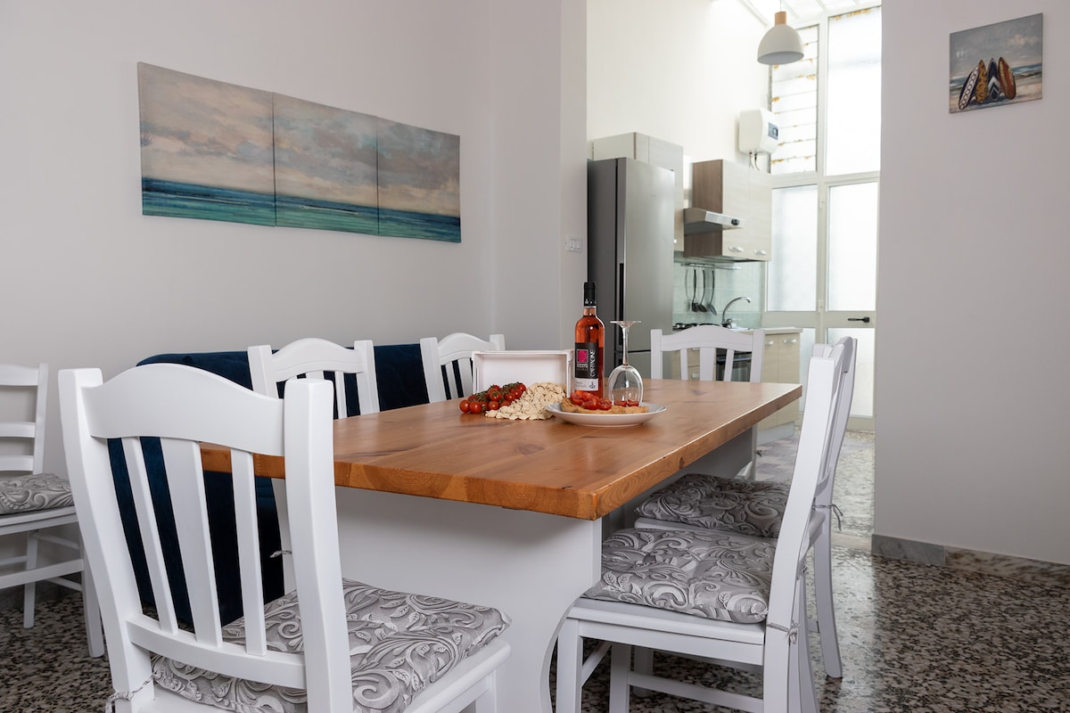 Recently renovated seafront apartment with breathtaking sea views and romantic sunsets. Located between two charming coastal villages linked by a beautiful seaside walk, in one of the most sought-after areas of Salento. Cafés, restaurants, beach, local market, and a pharmacy are all within short walking distance. A scenic coastal road runs between the house and the sea, offering easy access to the waterfront. Perfect for guests who want to explore Salento while waking up to a sea view.