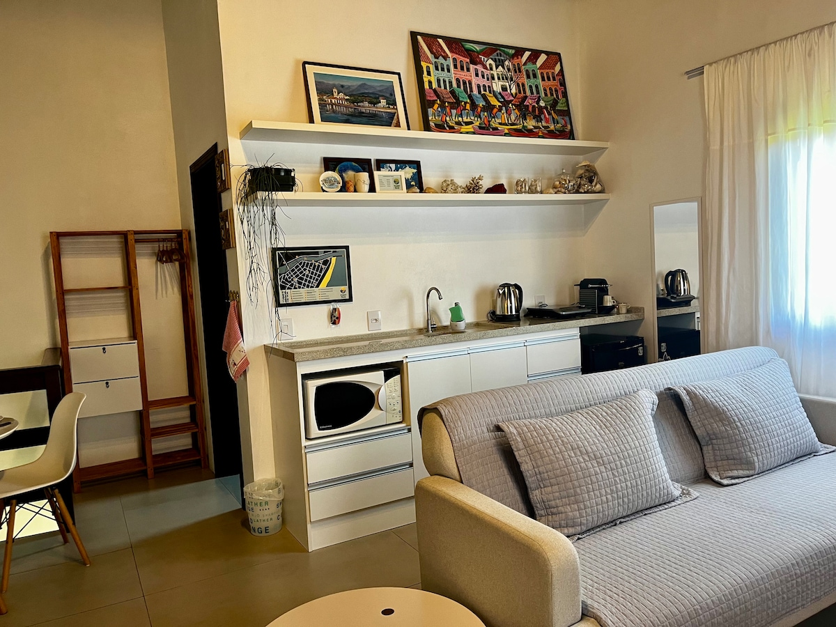 Proprietà con soffitto alto e splendidamente arredata per accogliere i nostri ospiti. È un monolocale spazioso e confortevole! 30 mq ben illuminati e con servizi. Si trova sul retro della residenza dei proprietari ma con ingresso indipendente. Situato a 400 metri dalla spiaggia di Molhes e a 100 metri dalla Strada Gastronomica. Ci sono utensili per preparare piccoli pasti, ma se preferisci, i migliori ristoranti della città sono vicini! Panificio, supermercato e pizzeria si trovano nelle vicinanze