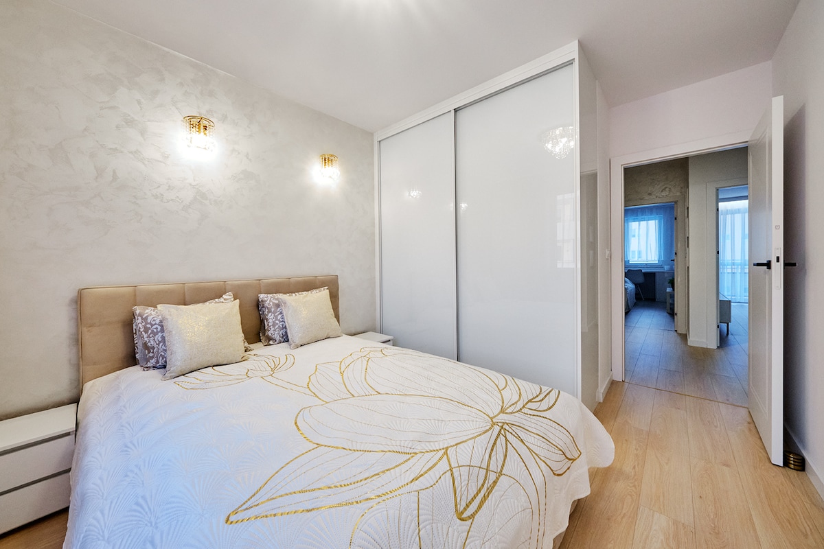Moderno appartamento in una posizione tranquilla con accesso diretto al centro storico e culturale di Toruń, si trova in un nuovo edificio al 2° piano, con 2 camere da letto e 2 bagni, è arredato in modo confortevole, con un'atmosfera piacevole ed energia positiva, internet veloce, dispone di un posto auto nel garage sotto l'edificio e di un ascensore. Per il check-in autonomo. Nelle immediate vicinanze c'è una vasta foresta per passeggiate e un bellissimo parco. Offerta rivolta a non fumatori, senza animali.