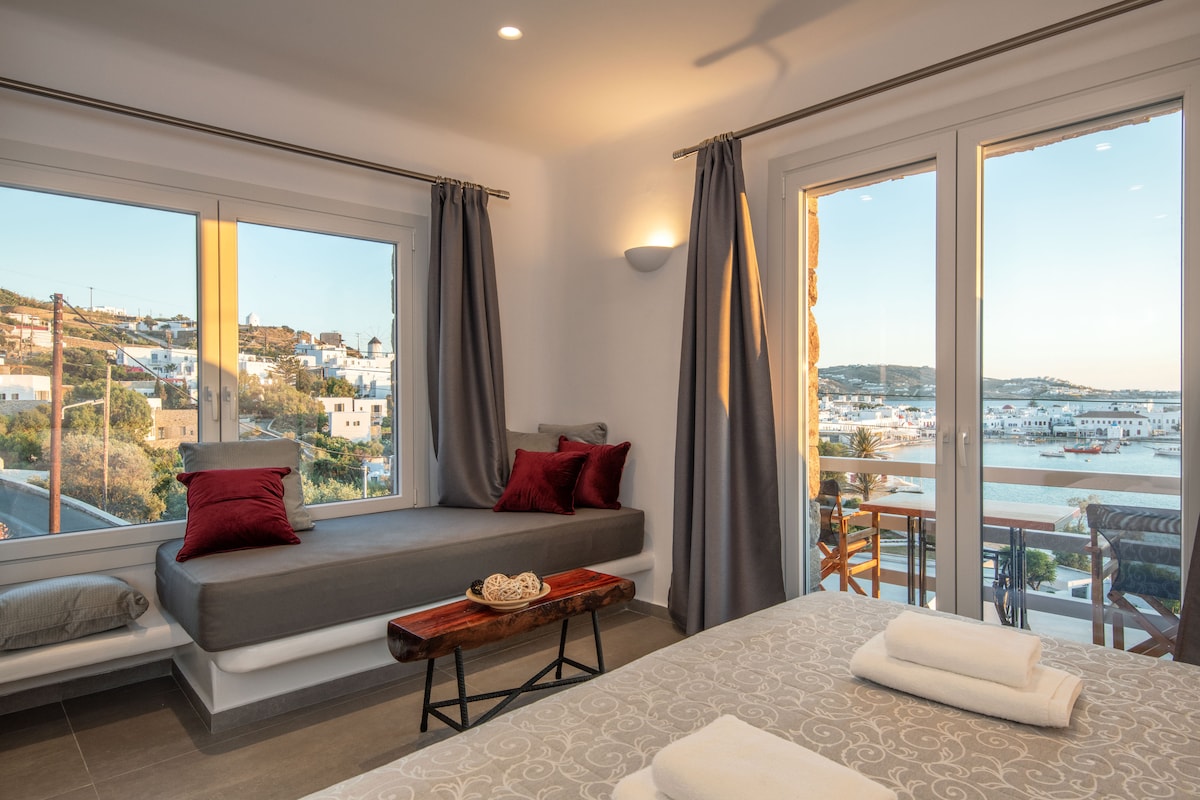Orientato al vecchio porto di Mykonos, con vista su Gialos e sulla città, Magic View Suites Mykonos, è il luogo ideale per trascorrere vacanze senza pensieri. Realizzato e decorato con cura e ispirazione extra, nonché completamente attrezzata con TV,aria condizionata, macchina per il caffè, articoli da toeletta, asciugacapelli, ecc. Ogni suite include un letto king-size, un'area salotto,un bagno e una terrazza con mobili da esterno.