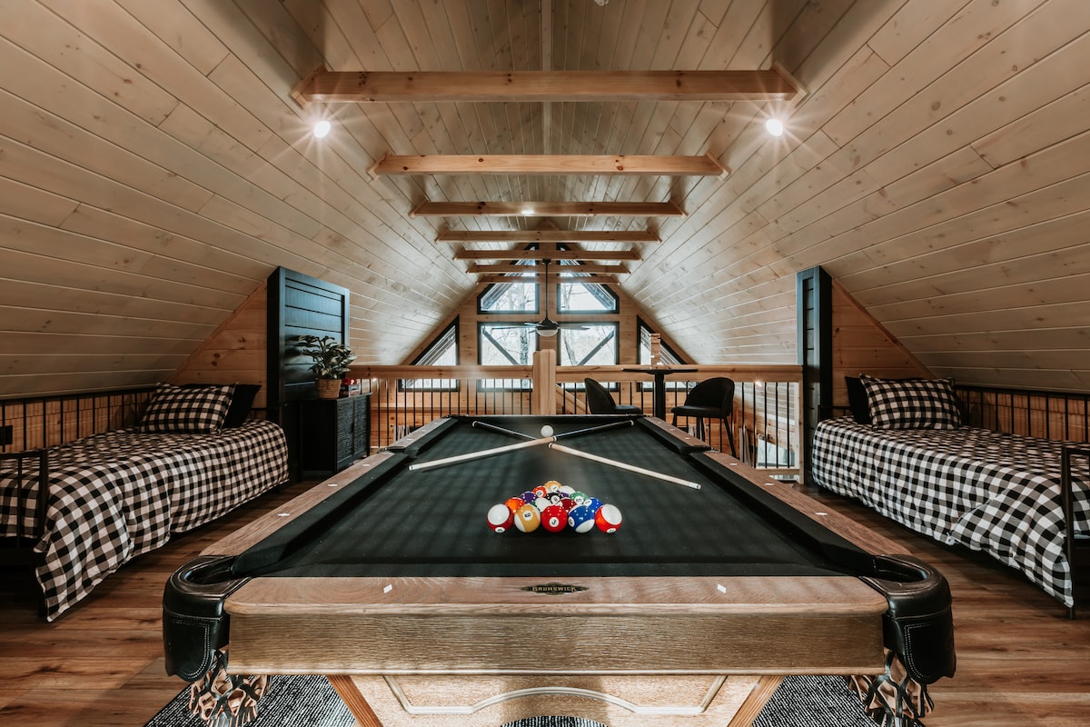 Ti diamo il benvenuto nella nostra splendida baita di nuova costruzione con 3 camere da letto, piscina coperta e vasca idromassaggio. Immersa in una comunità appartata, con splendide viste sugli alberi, questa oasi moderna offre privacy e relax! Non è stato risparmiato nulla nel creare un ambiente divertente e rilassante per amici e familiari. TV a schermo piatto di alta gamma e audio Sonos per ascoltare i tuoi brani preferiti, ovunque tu scelga di rilassarti. La sala giochi ha l'Air Hockey, una console multi gioco e il corn hole per un sacco di divertimento!