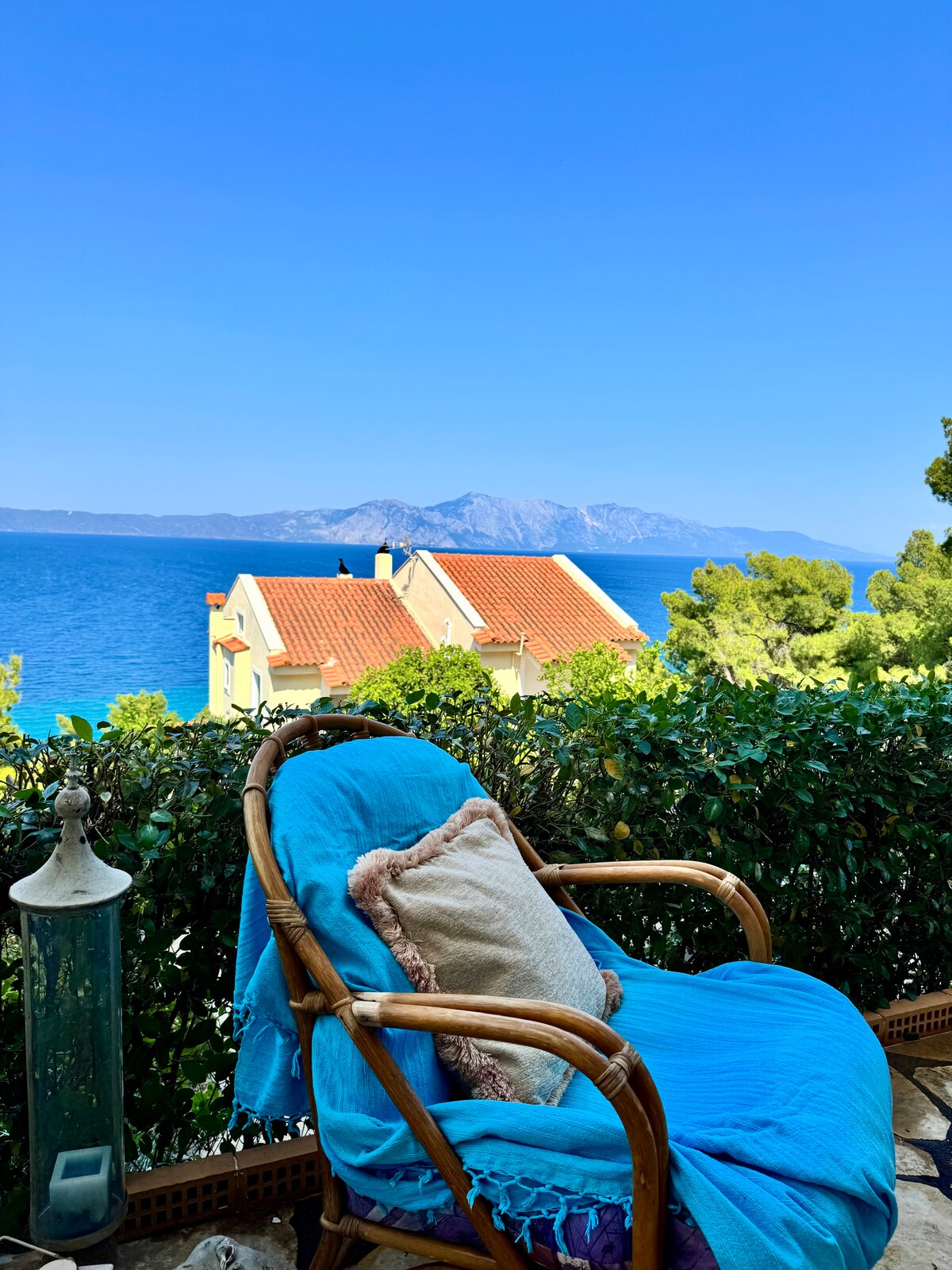 Una meravigliosa villa d'epoca per momenti di relax e tranquillità, a 100 km in auto da Atene o a 1 ora e 30 minuti dall'aeroporto internazionale di Atene, nella tranquilla area privata di Dafni, sull'isola di Evia. È una casa spaziosa con incredibili viste panoramiche sul mare e sulle montagne, mentre include una piscina con vasca idromassaggio incorporata, un giardino con alberi e un'enorme terrazza. Ideale per famiglie, coppie o gruppi in cerca di una vacanza rilassante nella natura in quanto può ospitare comodamente fino a 7 persone.