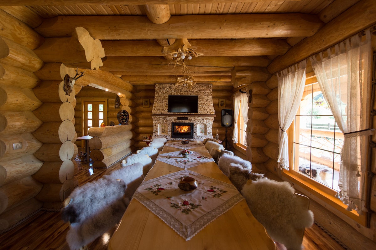 Il cottage ha una bellissima zona giorno e una cucina completamente attrezzata, oltre a un caminetto. È estremamente suggestivo, il luogo perfetto per godersi la montagna. All'esterno c'è una bellissima corte con terrazza esterna e zona salotto per gli ospiti, barbecue. Un incantevole ruscello attraversa la proprietà. C'è anche un parco giochi per bambini, 2 amache, un'altalena e un'area relax per adulti - vasca idromassaggio riscaldata (che viene pagata extra su richiesta). È il posto perfetto per una vacanza fantastica.
