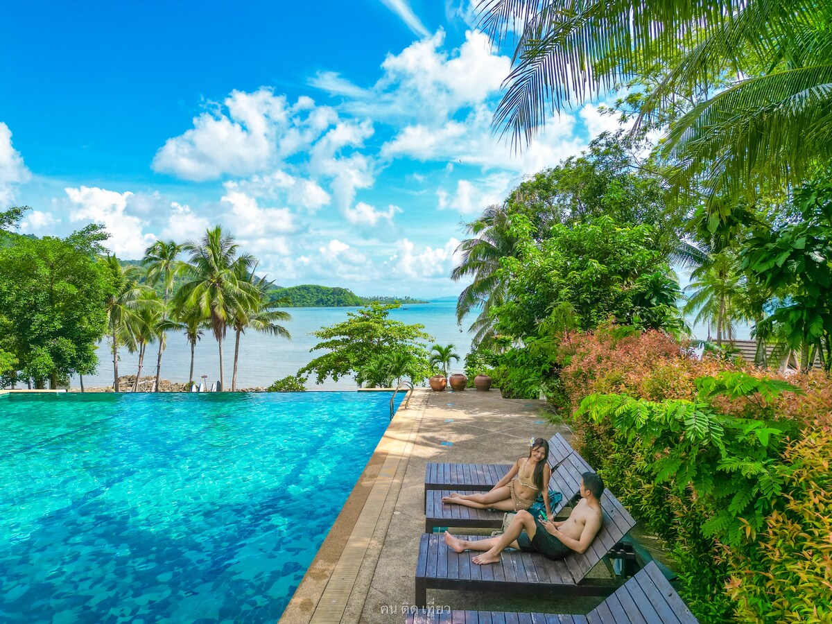 La camera è vicino al mare. In grado di parcheggiare davanti alla camera C'è un balcone di fronte alla camera che si affaccia sul mare e sulle montagne di Koh Chang. È vicino al lungomare di Coco Beach del resort e a un ponte di legno che si estende fino al mare.