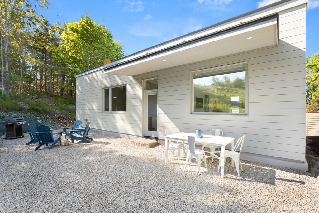 Romantic and secluded, this 2,000 sf modern luxury cottage nestled on 12 private acres is a favorite of honeymooners and lovers of modern design * 1 hour to Acadia National Park & Bar Harbor; 15 min to shopping, hiking, swimming * Stargazing deck * 2 full baths, one with steam shower * Fully equipped kitchen with and under-counter fridge/freezer * Two gas fireplaces, one indoors, one on a covered deck * Queen bed with luxurious linens and pillows * WIFI, streaming TV, grill, bar * EV charger