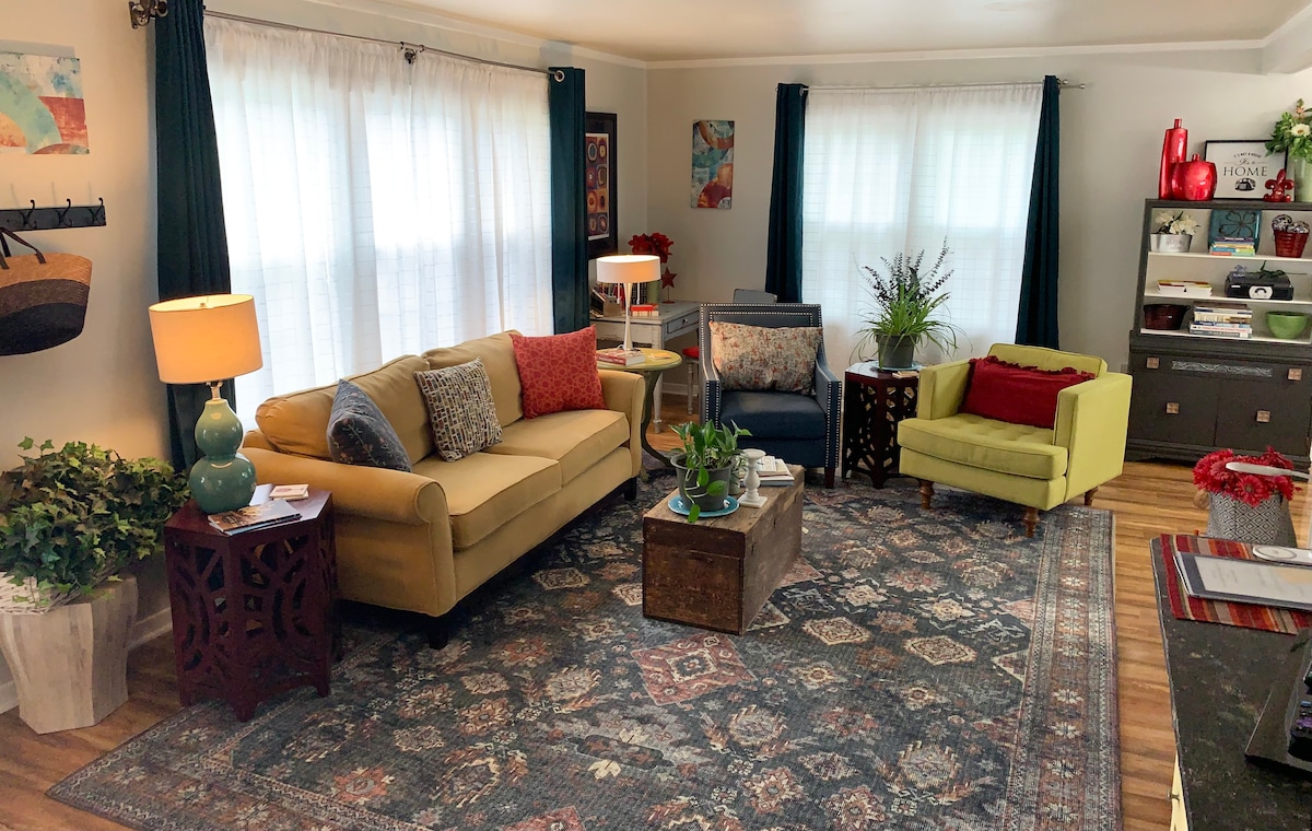 Questa cara casa pulita e scintillante si trova in un bellissimo quartiere alberato e tranquillo. Il cortile privato è un piacere con luci scintillanti di notte o barbecue e divertimento durante il giorno! Posizione comoda vicino ai fiumi Hanford, Columbia e Yakima, al centro città, alle cantine, ai percorsi pedonali e all'accesso all'autostrada. Con 2 salotti separati, c'è molto spazio per un massimo di 9 ospiti!