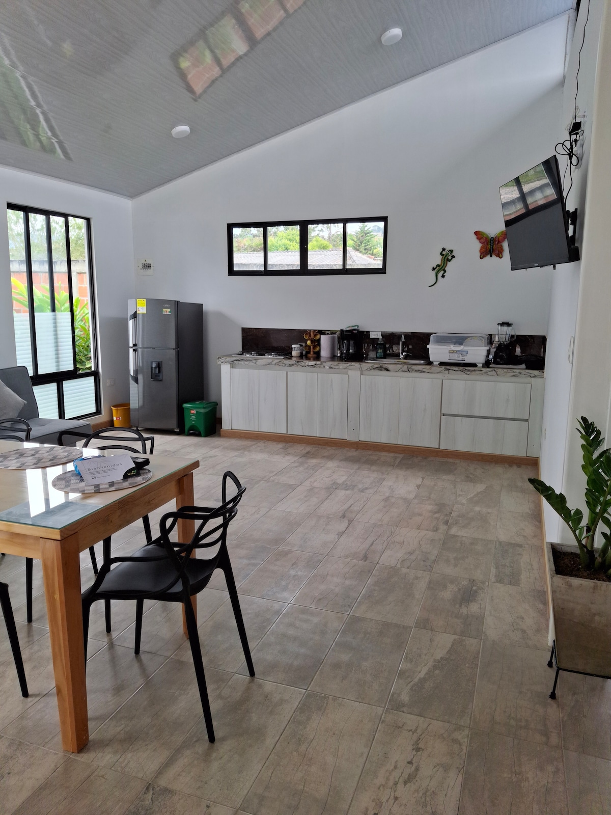 Condominio privado seguro y tranquilo, a 10 minutos de todos los servicios (supermercados, puesto de salud, colegios,), Casa con 6 habitaciones(7camas) 4 baños completos, sala comedor. Area externa con amplia cocina abierta , sala - comedor, asador , hamacas, juego de sapo , Amplio parqueadero, internet wifi. La piscina se encuentra en el Área social del condominio a dos minutos 🚗 , Cacha baloncesto , voleibol, billar Pool y zona juegos Zona de rio , con espacio de fogones para cocinar.