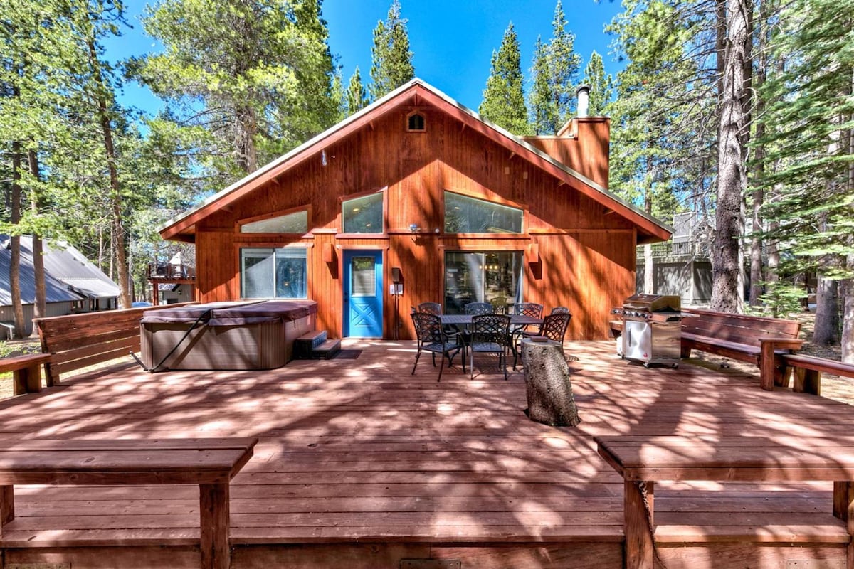 Incantevole chalet con 3 camere da letto e terrazza privata a Truckee 8 ospiti 3 camere da letto 6 letti 2 bagni Situato a soli 15 minuti dal centro di Truckee, questo delizioso chalet con 3 camere da letto e 2 bagni è la meta perfetta per una vacanza a Tahoe. Riscaldati vicino al caminetto a legna, rilassati sull'ampia terrazza o gioca a calcio balilla nel soppalco. Può ospitare fino a 8 persone. PANORAMICA DELL'ALLOGGIO Un open space con soffitti a volta, pavimenti in legno massello e arredi moderni di montagna crea un'atmosfera accogliente, con abbondanza di spazi interni ed esterni.