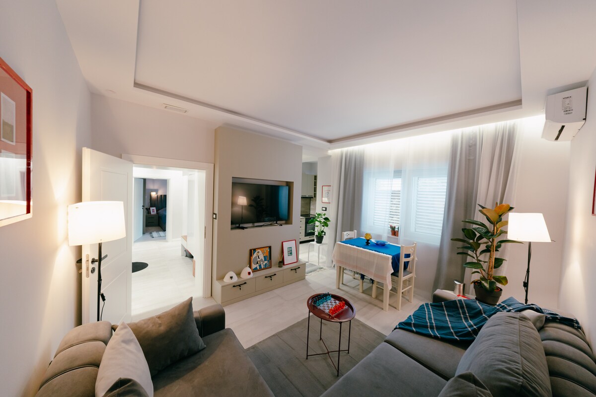 Scopri il meglio di Scutari da questo accogliente ed elegante appartamento situato proprio nel cuore della città. Perfetto per viaggiatori singoli, coppie o ospiti d'affari, questo spazio completamente arredato ha tutto il necessario per un soggiorno confortevole, tra cui una cucina completamente attrezzata, un'elegante zona giorno, Wi-Fi veloce e aria condizionata. Esci e sei molto vicino al teatro, ai supermercati e alle principali attrazioni della città. Posizione ✓ centrale ✓ Completamente attrezzato ✓ Ideale per soggiorni brevi o lunghi