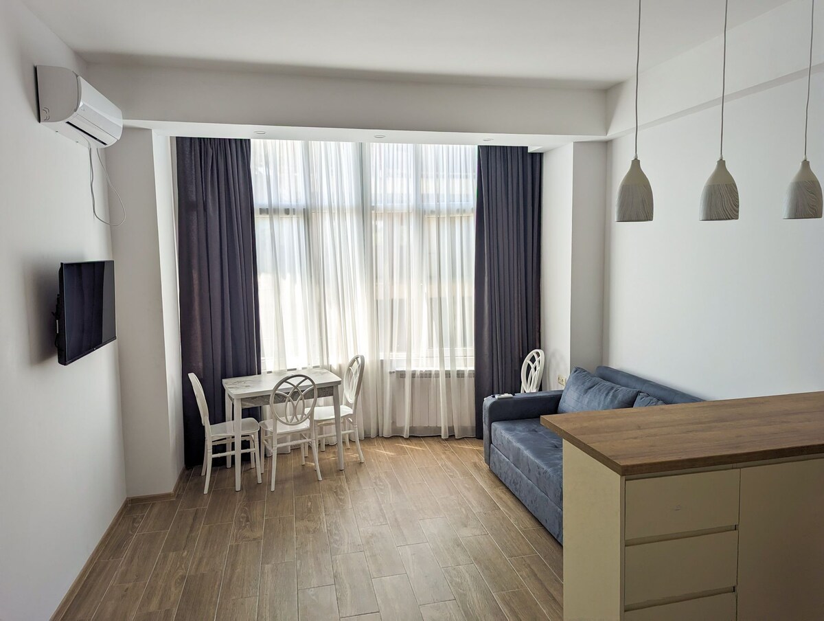 Appartamento nuovo di zecca vicino al centro di Kutaisi, accanto al fiume Rioni. Design luminoso ed elegante e ottima posizione, ideale per un soggiorno memorabile ❤️