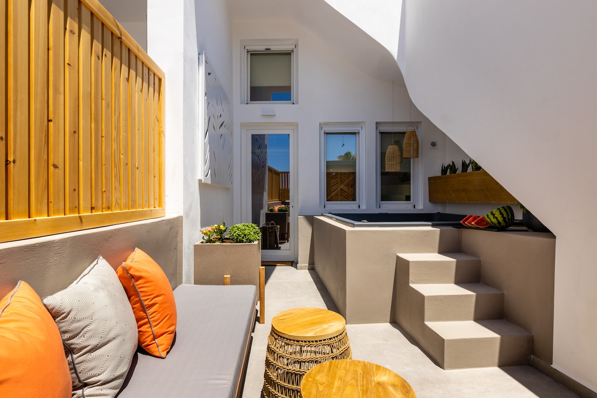 Luxe Loft Apartment è uno dei 4 appartamenti indipendenti lussuosi per famiglie dell’alloggio LOFTS the village summer apartments.’E nuovo e completamente attrezzato in modo che vi offra un soggiorno confortevole, con stile ed un rilassamento assoluto. L’appartamento si trova nel quartiere storico di Marmara. Il cortile privato con il jacuzzi, il soggiorno esterno e lo spazio splendidamente decorato sono in armonia con la tranquillità del luogo e vi promettono momenti di rilassamento unici.