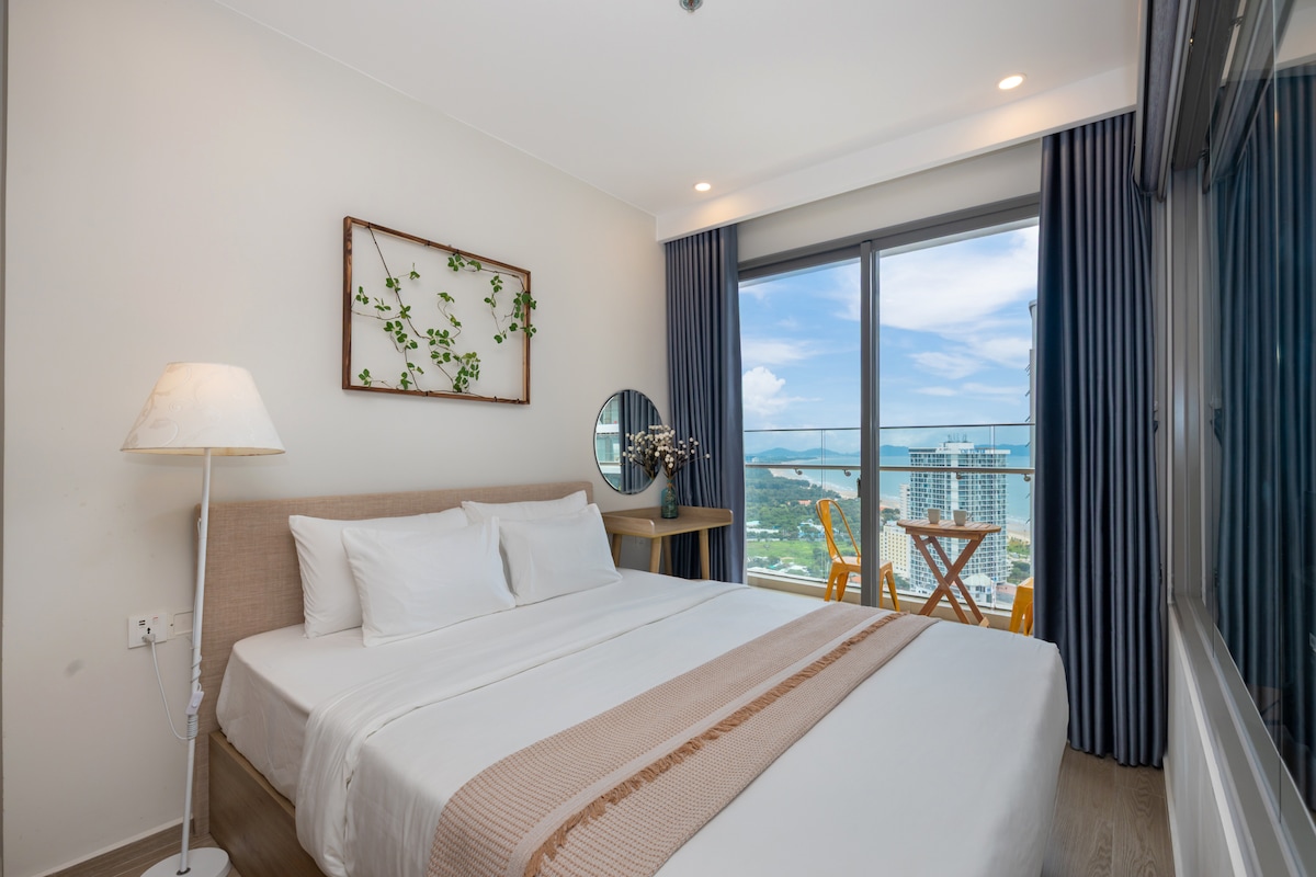Appartamento 1BR minimalista, completamente arredato, al 15 ° piano con spettacolare vista mare. Ideale per coppie o famiglie con un bambino di età inferiore a 5 anni. Perfettamente situato accanto alla spiaggia di Back (spiaggia di Thu ? Vân). Tempi stimati a piedi per raggiungere i servizi nelle vicinanze: - 2 minuti per raggiungere la spiaggia dall'altra parte della strada - 5 minuti per il minimarket aperto 24 ore su 24 (GS25) - 8 minuti per il supermercato più vicino (Lotte Mart) Ascensori veloci. Netflix gratuito. Abbiamo anche una moto disponibile per il noleggio.