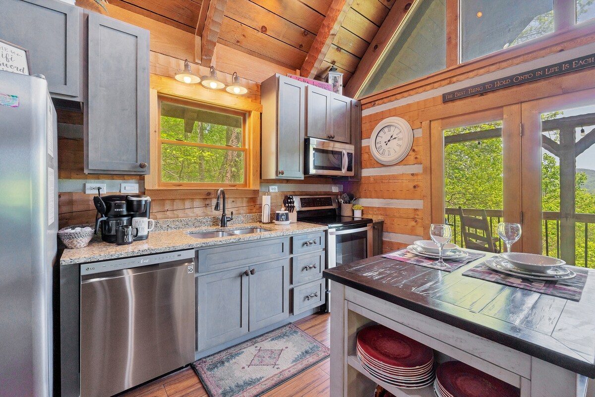 Situato all'interno della splendida comunità di Timerwinds a Townsend, questo monolocale unico nel suo genere si trova in cima a una montagna, appena fuori dal Parco Nazionale delle Smoky Mountains. Puoi goderti la piscina in comune, il padiglione per le grigliate o semplicemente sederti sul portico posteriore e ammirare la vista mozzafiato sulle montagne per chilometri. Sarai circondato da sereni panorami boschivi, che potrai ammirare sia dall'interno della baita che dalla vasca idromassaggio, dopo una giornata di escursioni nel Parco Nazionale delle Great Smoky Mountains.
