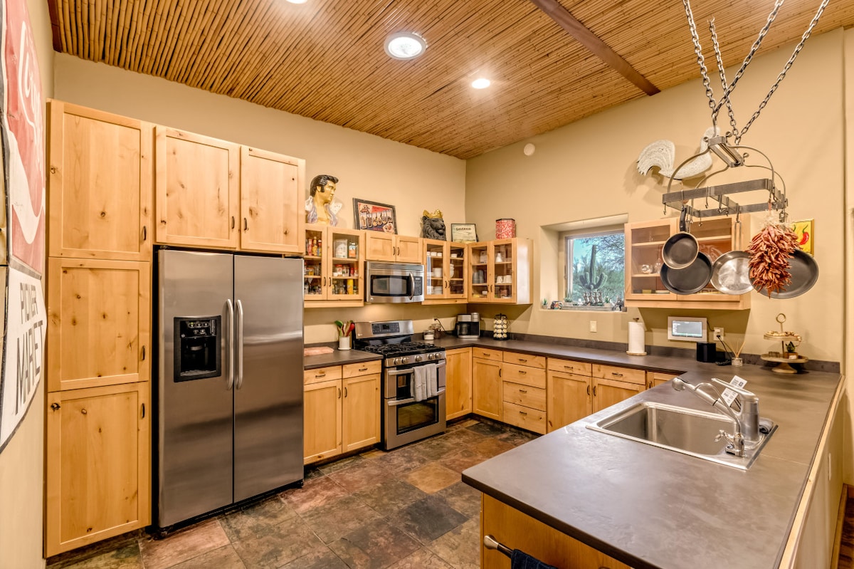 Ti diamo il benvenuto alla Owl House, un rifugio nel deserto in stile hacienda classica con tocchi e comfort moderni e un tocco di stile sud-occidentale. Con travi in legno ovunque, soffitti con pannelli in legno di 7,6 metri nell'ingresso, un lampadario in ferro, classici pavimenti Saltillo e piastrelle spagnole Talavera, ti sembrerà di tornare indietro nel tempo, ma sarai circondato da moderni servizi di lusso come una piscina a sfioro e una vasca idromassaggio, un focolare e una stufa da 122 cm.