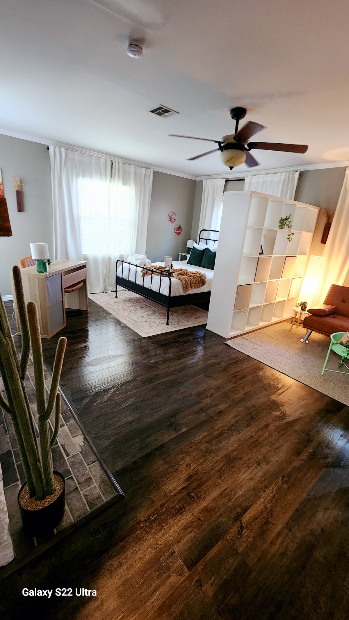 Suite con 1 camera da letto, ingresso privato con accesso al cortile sul retro, griglia e patio. Rilassati nella cabina doccia e poi riposa sul letto matrimoniale. La camera da letto ha soffitti a volta, una smart TV, un mini frigo con freezer separato e un forno a microonde. Si tratta di una stanza privata con ingresso indipendente in una proprietà condivisa. Una volta all'interno del tuo ingresso privato, troverai una porta adiacente chiusa a chiave che dà sulla casa principale. La porta rimane chiusa a chiave da entrambi i lati durante il soggiorno. Abbiamo adottato misure per l'insonorizzazione.