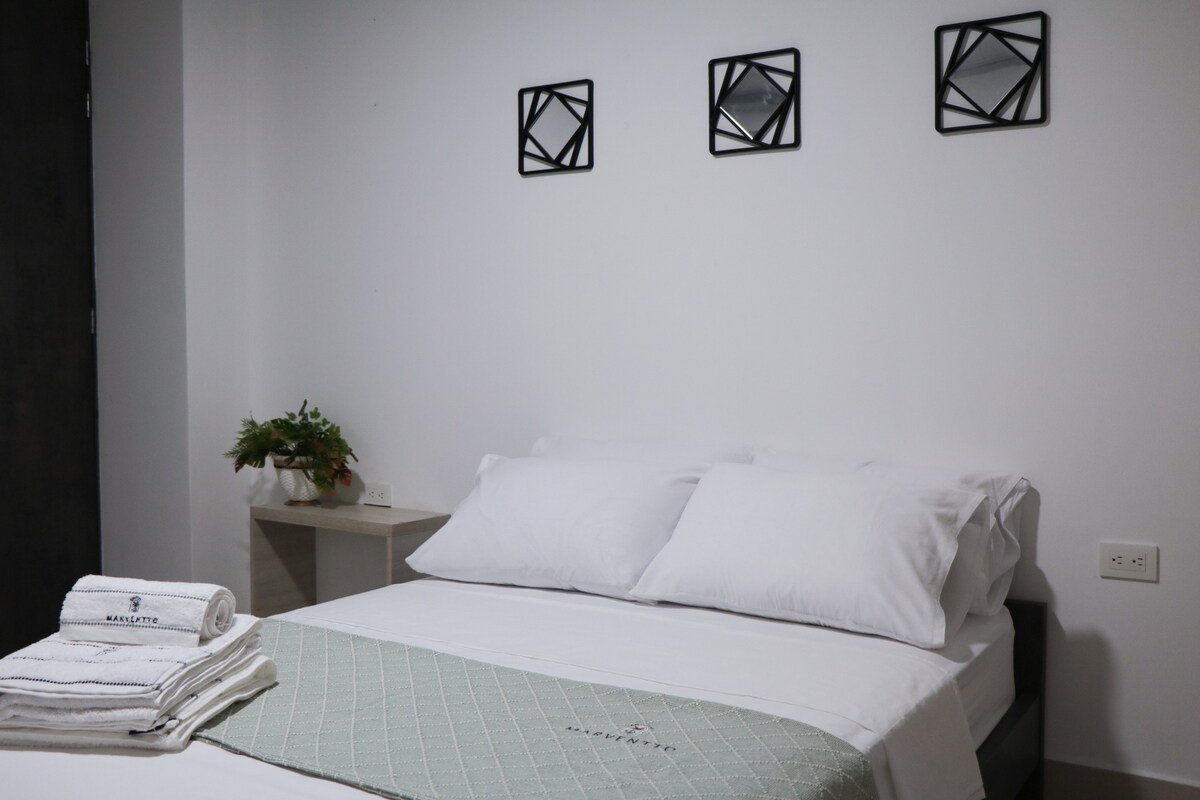 Confortevole appartamento per 3 persone con 1 letto matrimoniale e 1 letto singolo. Dispone di aria condizionata, bagno privato e cucina completamente attrezzata, opzione perfetta per chi viaggia per lavoro e turisti. Dispone di una lavanderia. Si trova in un luogo tranquillo e sicuro nella zona centrale di Tumaco e ha un ottimo accesso ai servizi di trasporto. MASSIMO 3 OSPITI. NON SONO AMMESSI ANIMALI O OSPITI.