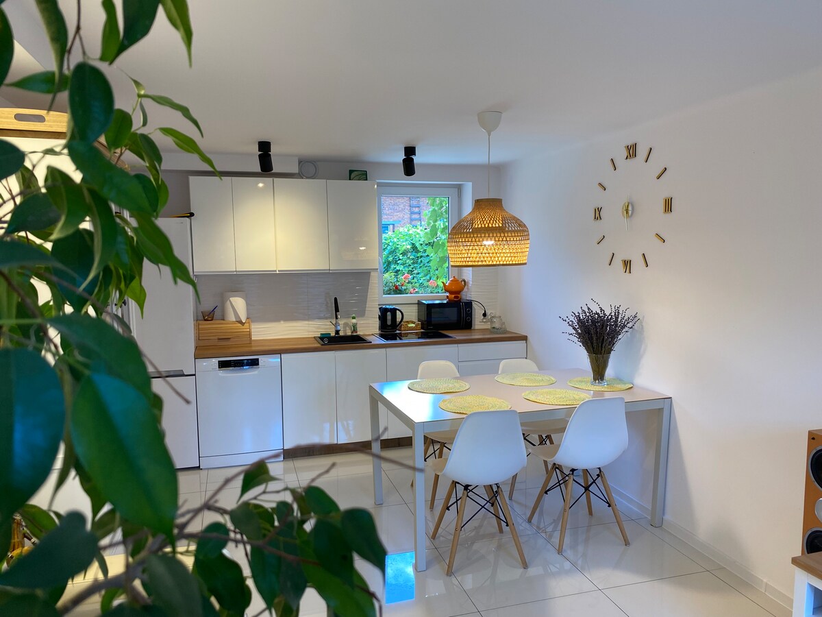 Moderno e spazioso appartamento situato al 2° piano in un condominio con ascensore in un complesso residenziale recintato. Si compone di un soggiorno collegato a una cucina completamente attrezzata, una camera da letto accogliente con letto e un bagno elegante. L'appartamento dispone di un balcone con vista sul parco, ideale per il caffè del mattino. Grazie alla disposizione funzionale dello spazio, è perfetto sia per soggiorni brevi che lunghi. Un ulteriore vantaggio è il posto auto privato in garage, che garantisce comfort e sicurezza.